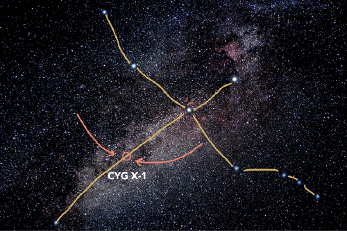 Cygnus-X1 in the constellation of the Swan. Right there is the microquasar. Image Credit: Dan Lessmann